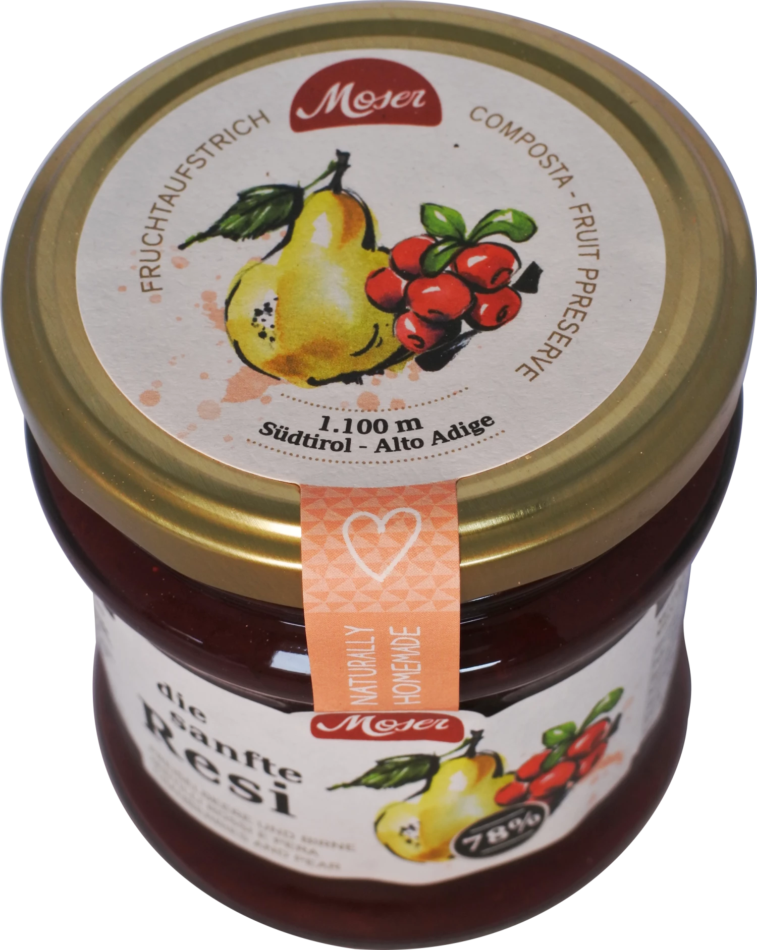 Fruchtaufstrich „die Sanfte Resi“- Birne & Preiselbeere, 340ml – Bäckerei Moser